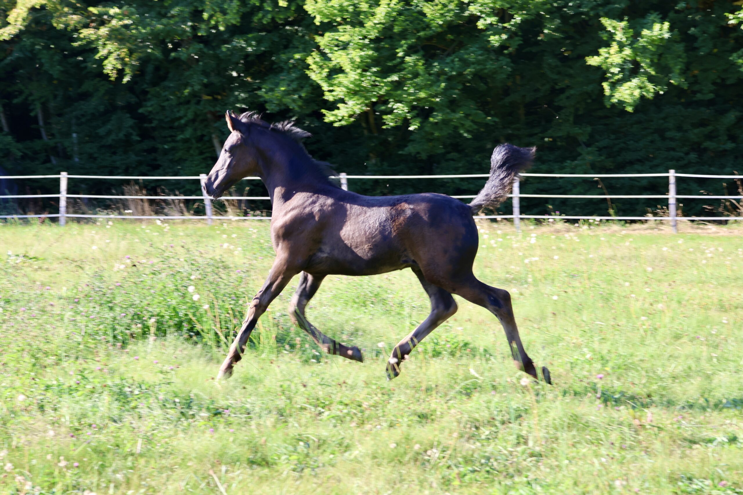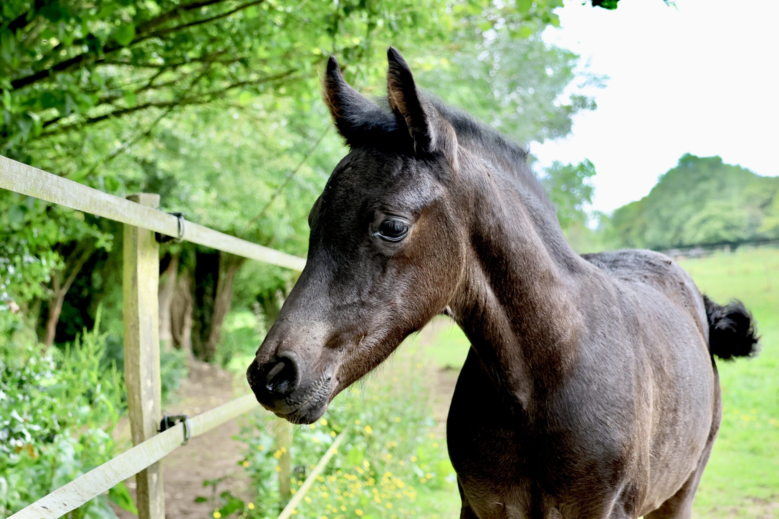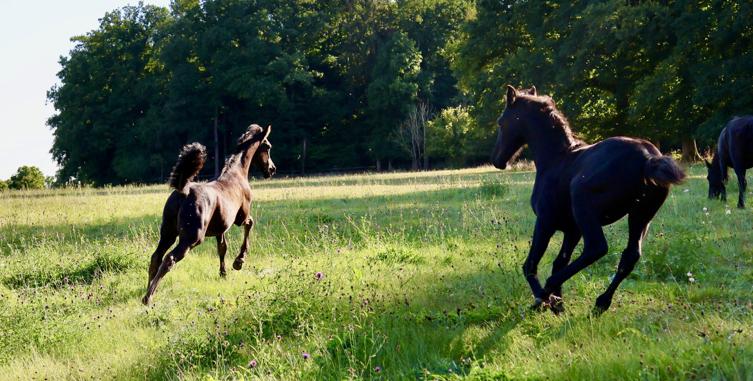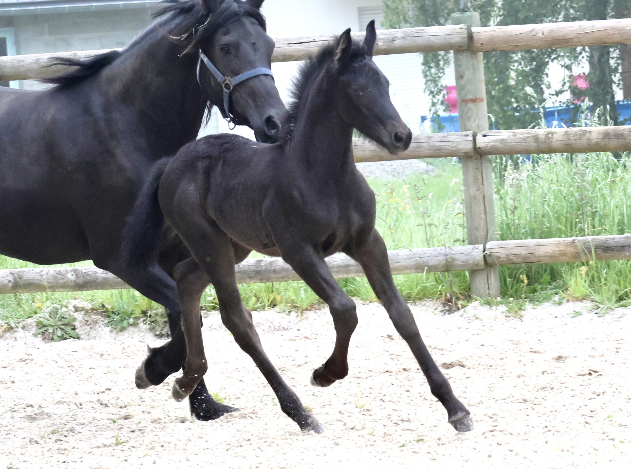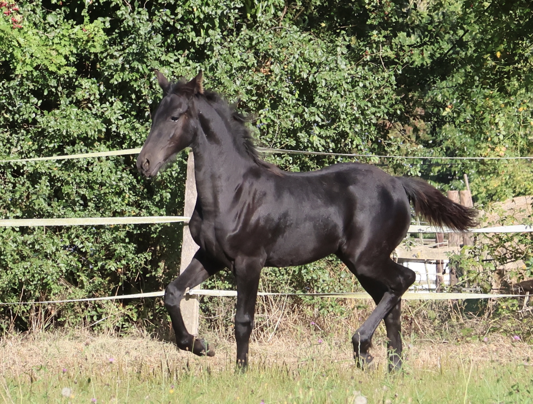 Un solide et joli poulain très typé Frison dans le modèle comme dans les déplacements. Très indépendant et curieux